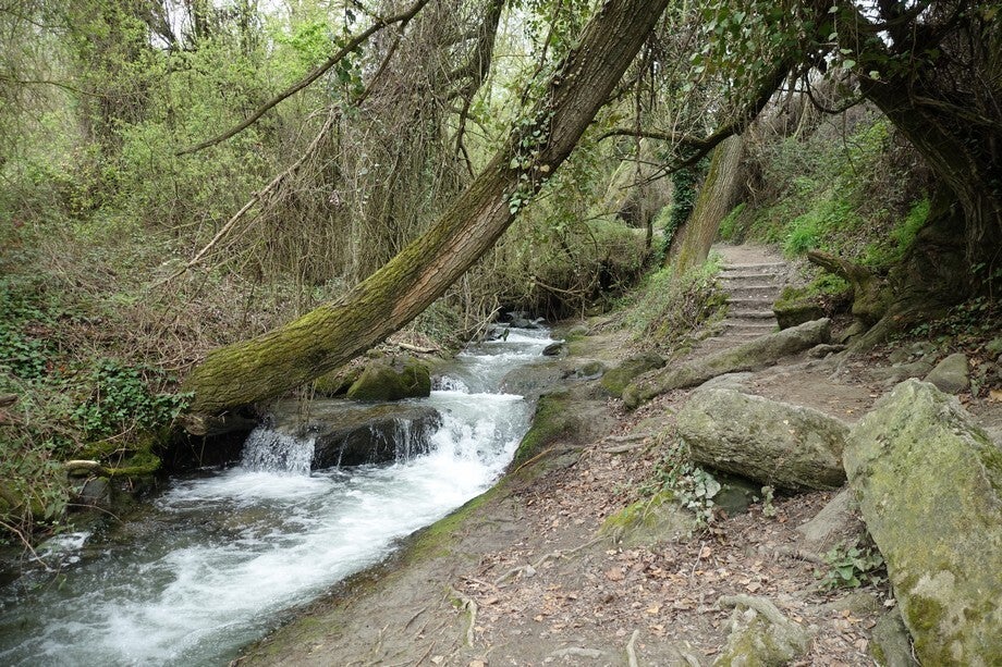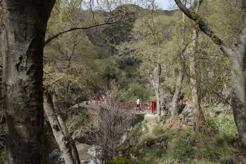 Hierna ging er een goed pad trapsgewijs omhoog en verder naar de tweede brug. Na die te hebben overgestoken was er weer een pad en trappen naar de derde brug. Na de derde was het tijd voor de lunch.