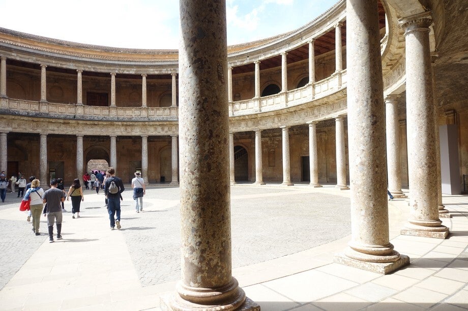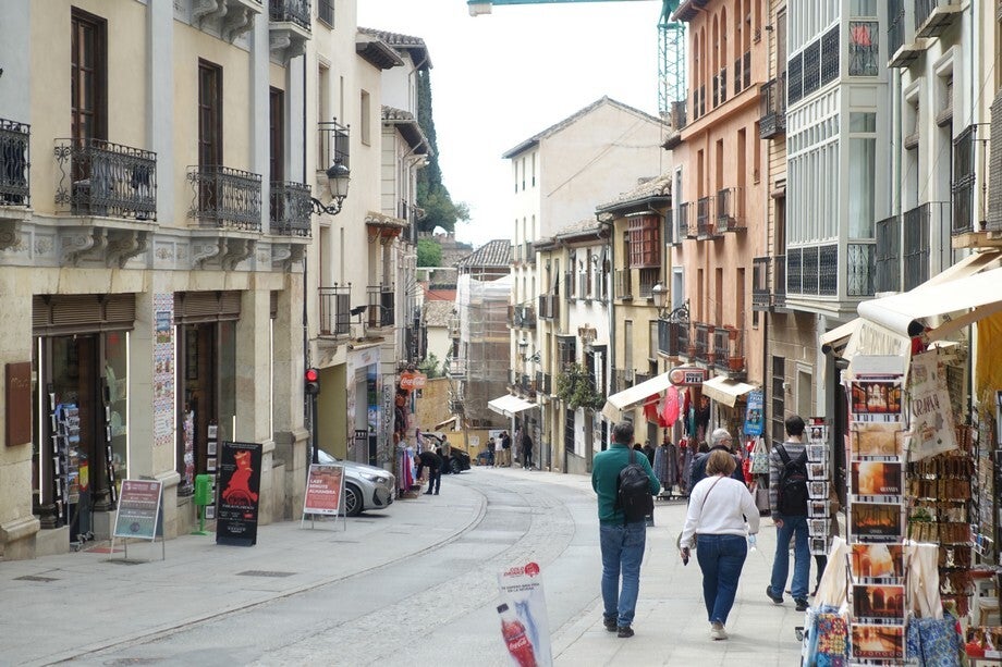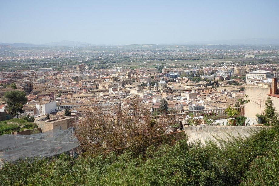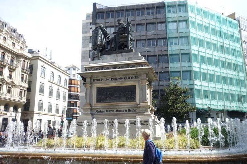 Na de koffie op de fiets gestapt richting Granada. Eerst over kleine weggetjes door de vallei naar een doorgaande weg. Daar loopt een fietspad langs naar de stad. Eenmaal in de stad nog een paar kilometer bijna rechtdoor naar het centrum. Dit gaat ook goed over fietspaden of over de rechter rijbaan.