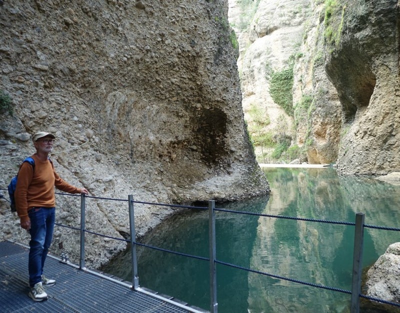Dus na de koffie weer op de fiets naar hetzelfde plein als gisteren. Daar vlakbij begint een wandelpad naar beneden de kloof in.
