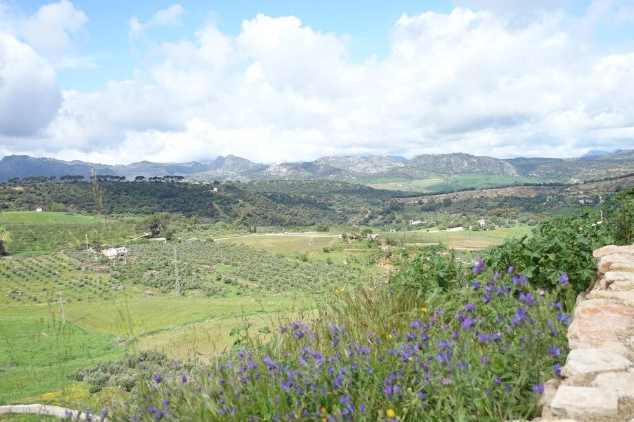Onderweg veel uitzichten op Ronda en het mooie groene dal ervoor.