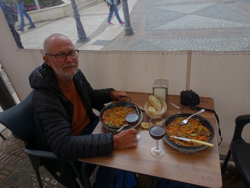 Eenmaal weer boven hebben we nog een poosje door het stadje gedwaald en zijn we lekker paella gaan eten. De zon was er ook weer bij en we zaten prima vlakbij de terraskachel!