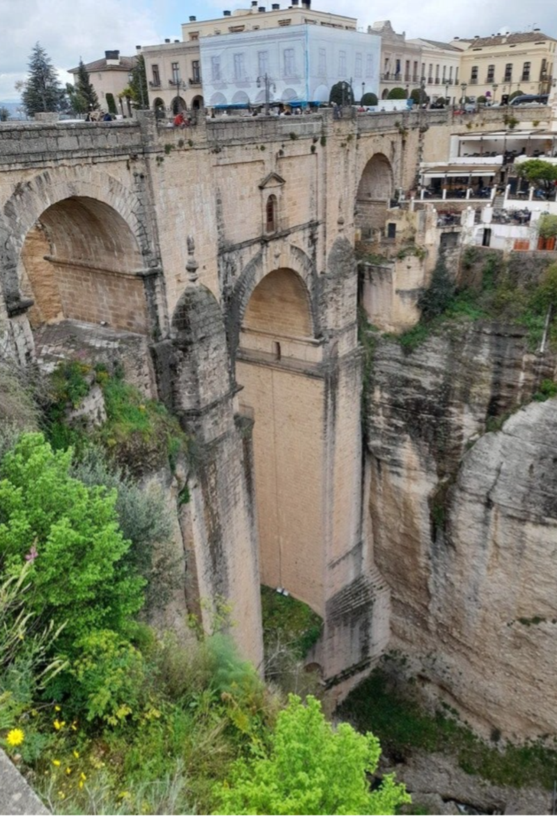 Vanmiddag zijn we naar Ronda gelopen. De stad wordt in tweeën gedeeld door een diepe kloof waar de rivier Guadalavin doorheen stroomt. Aan de zuidkant ligt het oude Moorse centrum en aan de noordkant ligt het Ronda van na de 16e eeuw. De twee delen worden verbonden door drie bruggen.
