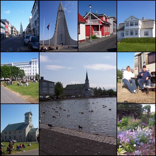 Reykjavik is best bijzonder met heel veel verschillende kerken en ook veel verschillende huizen ook nog van golfplaat en vrolijk geschilderd. Er zijn mooie winkelstraten en gezellige terrasjes en een meer in de stad . Het is weer mooi weer dus erg druk op straat met wandelaars ook in de parkjes heel gezellig. We hebben leuke souvenirs gevonden en ook een paar flessen wijn gekocht. Dit moet in een speciale winkel hier en is ook best duur maar we hebben te kort meegenomen.